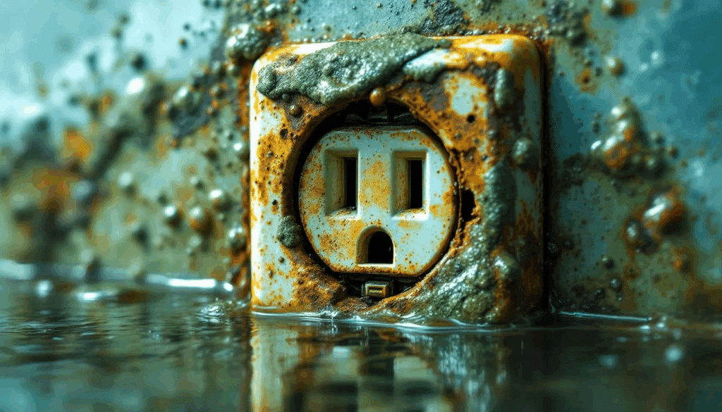 L’eau et l’électricité forment un mélange particulièrement dangereux. Lorsque l’humidité s’infiltre dans les installations électriques, elle provoque des court-circuits qui peuvent déclencher des incendies ou des électrocutions. Les prises murales situées près du sol sont particulièrement vulnérables lors d’infiltrations par les fondations.