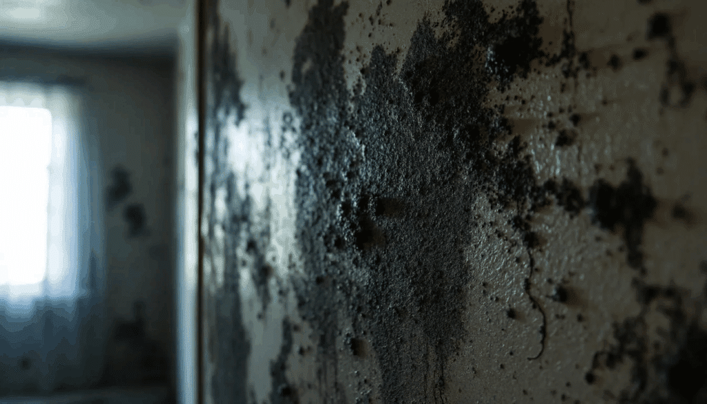 La moisissure se développe en 24-48h dans un environnement humide, créant des risques respiratoires graves