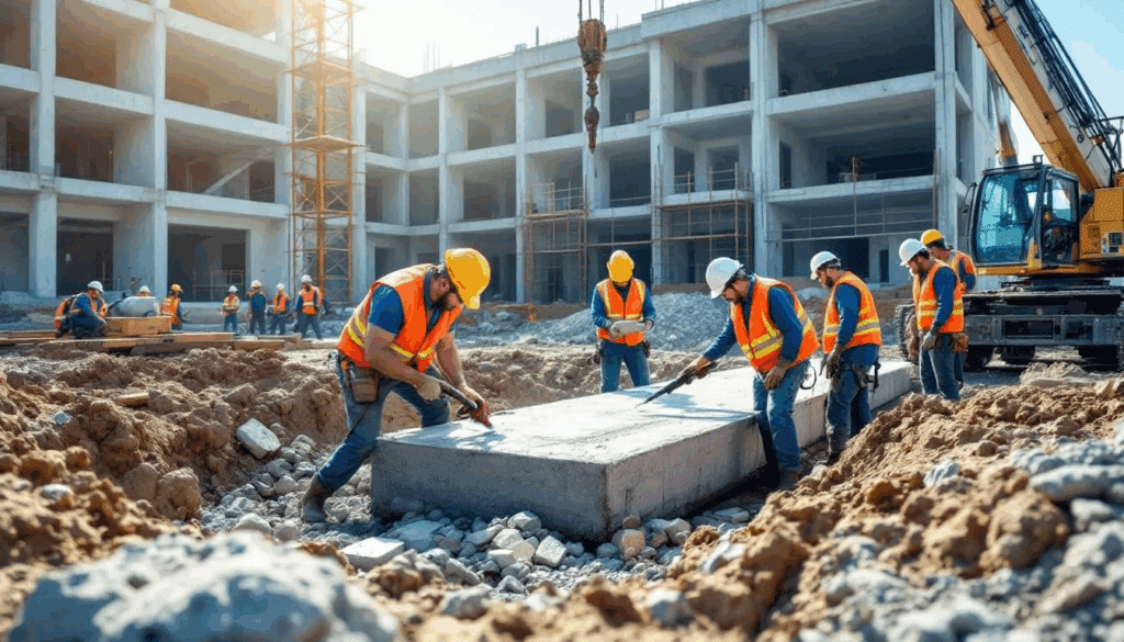 Le renforcement structural avec barres d’armature supplémentaires devient nécessaire lorsque l’intégrité du mur est compromise. Cette intervention majeure restaure la capacité portante de la fondation.