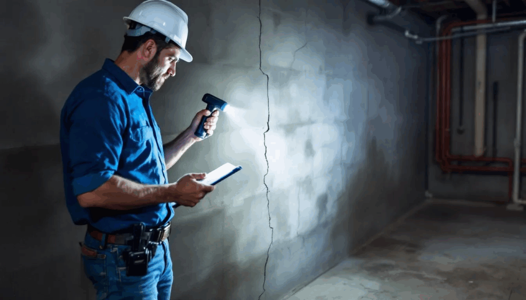 Les signes précurseurs incluent un bombement visible des murs vers l’intérieur, des fissures horizontales progressives et des difficultés croissantes à ouvrir les portes et fenêtres du sous-sol pendant l’hiver. L’utilisation de coins (pièces de monnaie) permet de surveiller l’élargissement des fissures et d’évaluer la gravité du problème.