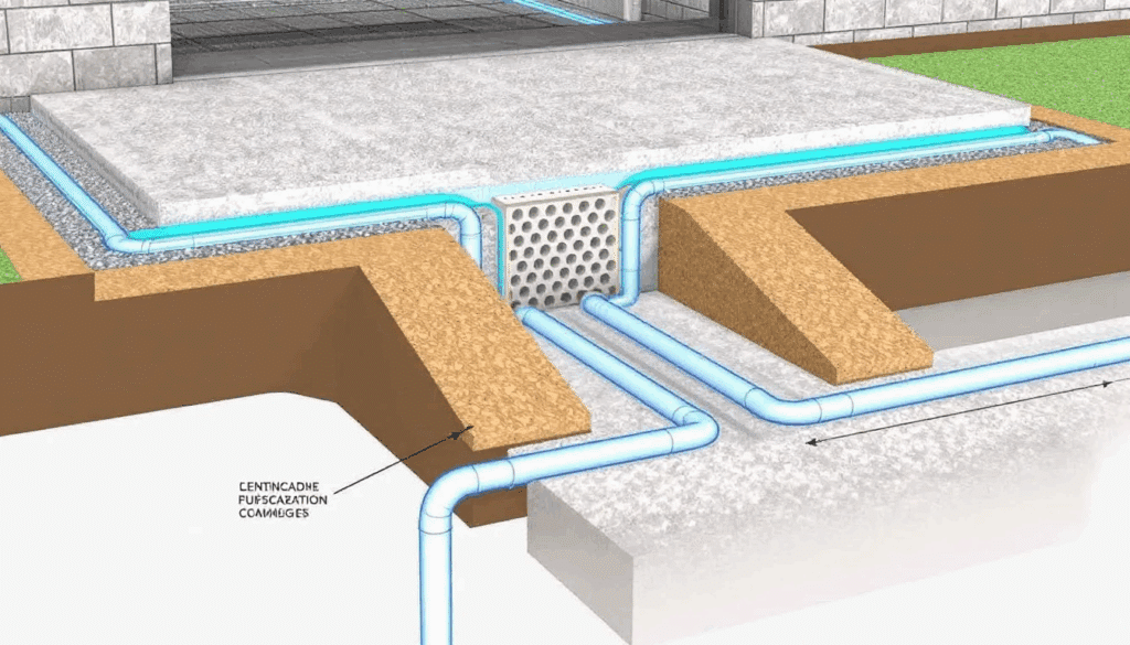 La création d’une pente d’au moins 2% autour de la fondation assure un écoulement naturel de l’eau de surface. Cette mesure simple mais efficace réduit considérablement les risques d’infiltration et de gel au niveau des fondations.
